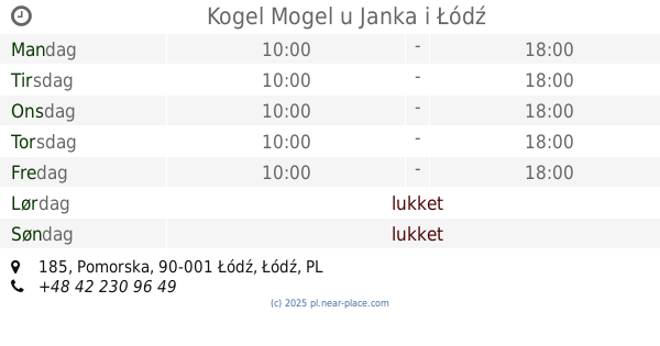 | Lørdag | lukket | |||||