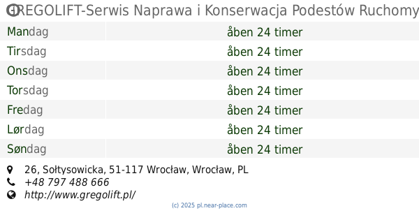 | Mandag | åben 24 timer | |||||