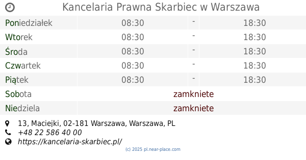 🕗 godziny otwarcia