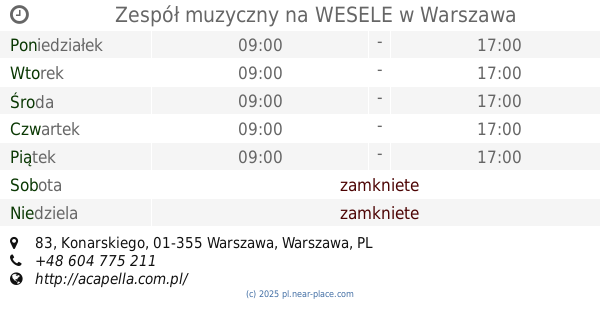 | Niedziela | zamkniete | |||||