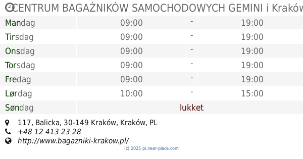 | Søndag | lukket | |||||