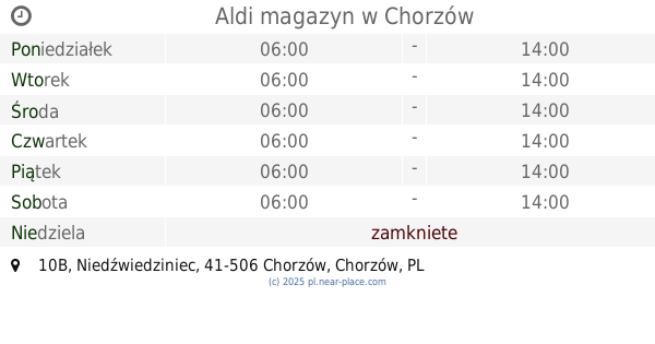 | Niedziela | zamkniete | |||||