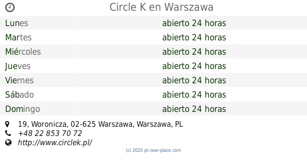 | Miércoles | abierto 24 horas | |||||