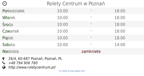 | Niedziela | zamkniete | |||||