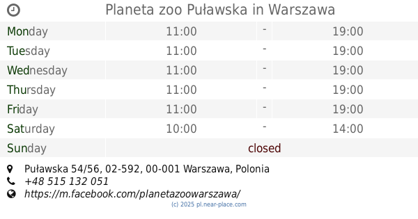 | Sunday | closed | |||||
